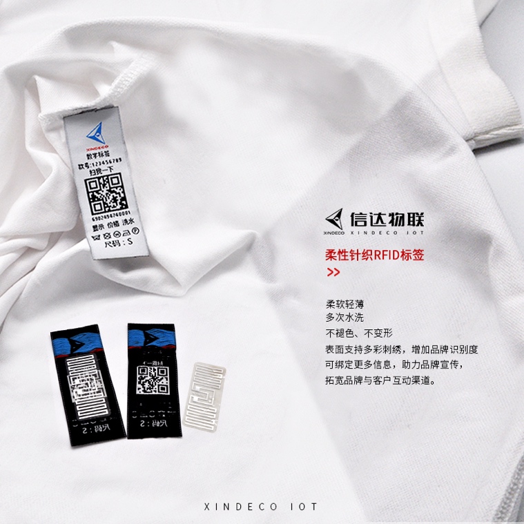 3、相較于傳統(tǒng)的RFID洗嘜,信達(dá)物聯(lián)二代柔性RFID標(biāo)簽更柔軟親膚,針織工藝可耐50次以上水洗不變形、不褪色,可伴隨產(chǎn)品長期使用,終端消費(fèi)者可通過表面信息聯(lián)系品牌商,提高復(fù)購率。