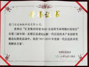 喜訊!信達(dá)物聯(lián)服裝項目再度獲評優(yōu)秀解決方案獎